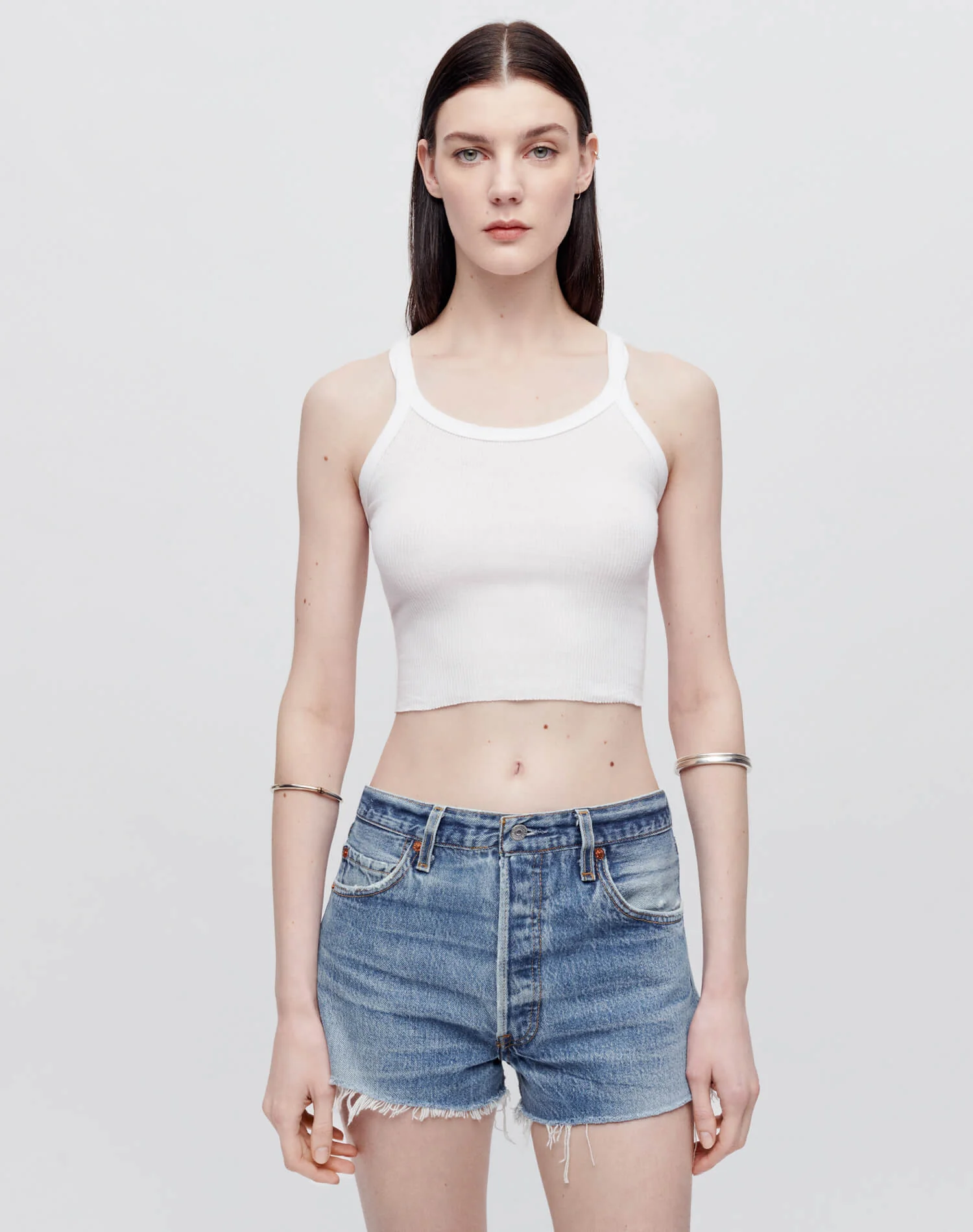 The Cropped Ribbed Tank in Optic White is a modern take on the classic sleeveless men's undershirt in a heritage cotton rib.