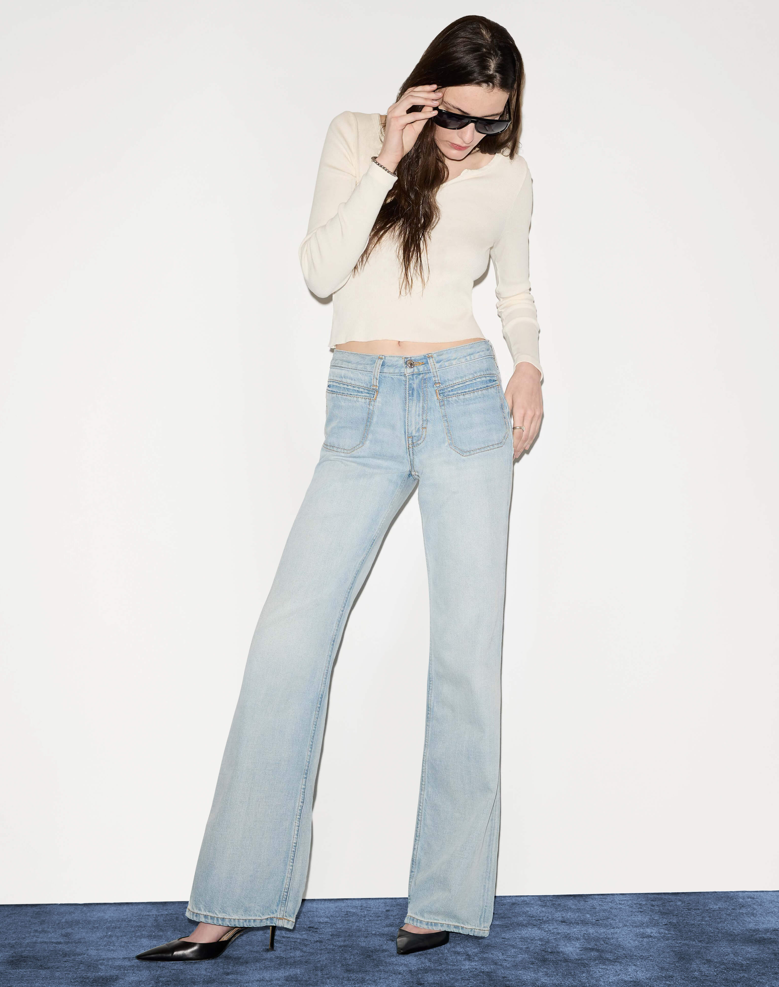 Fit: V neck, fitted, slightly cropped, long sleeves.