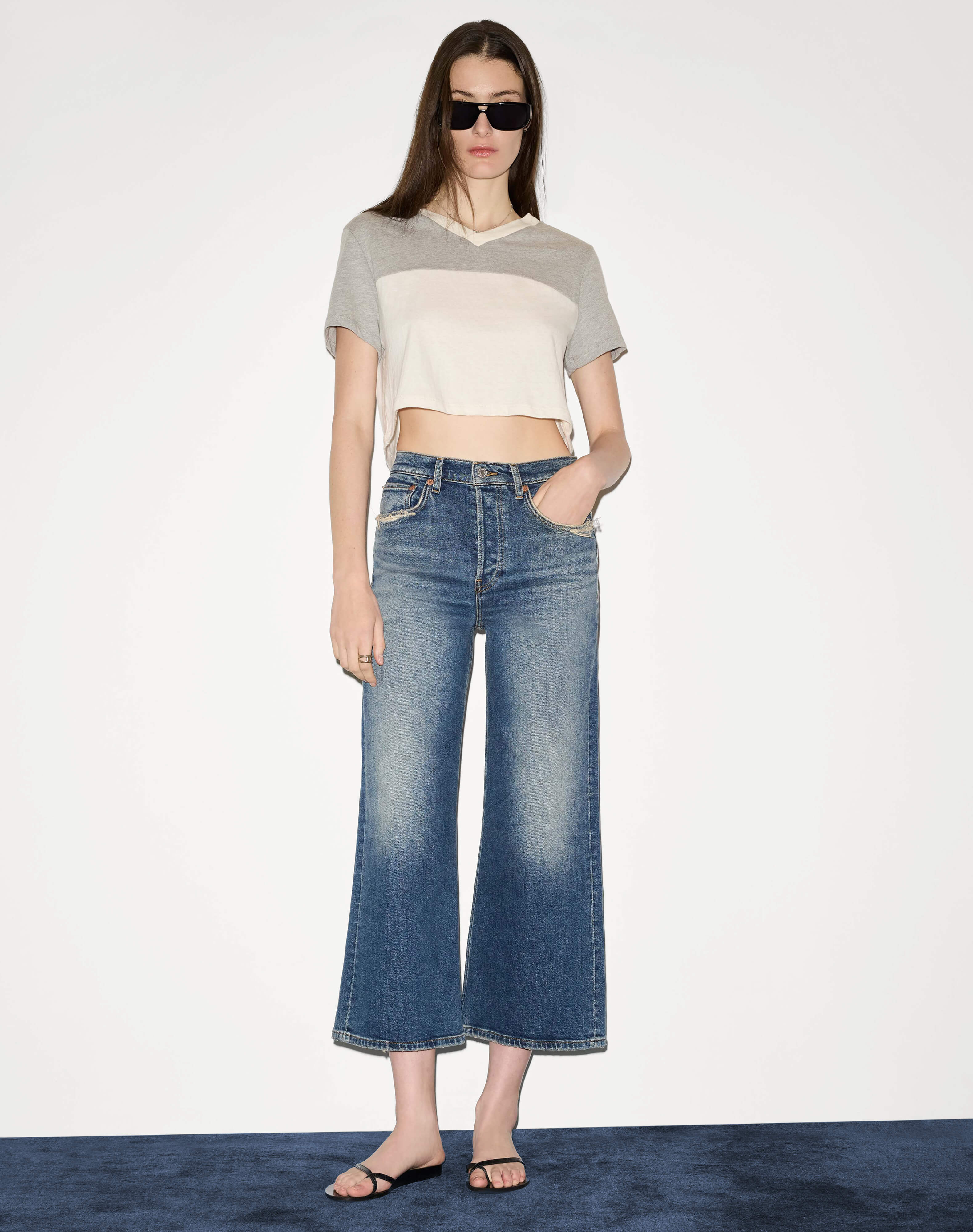 Fit: V neck, loose, cropped length, short sleeve.